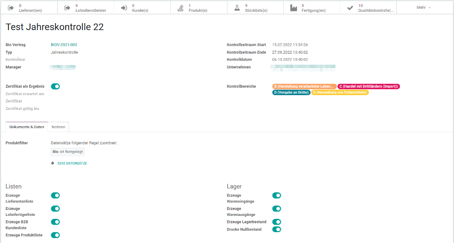 - Verwaltung Ihres Bio-Vertrages inkl. Partner, verantwortlichem Manager und Zertifikatsgültigkeiten sowie Verwaltung von Zertifikatsdokumenten