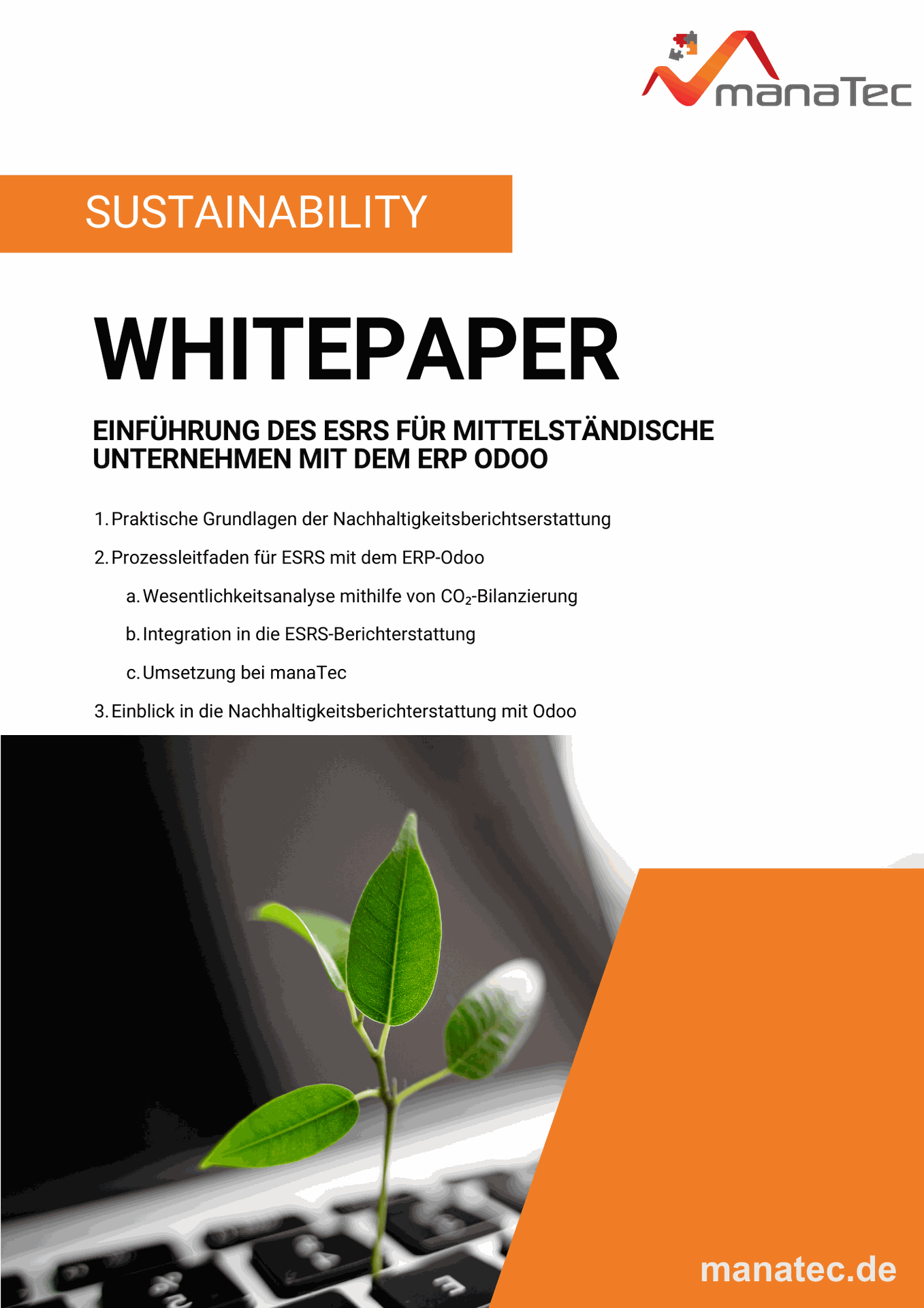 Odoo kann mit Hilfe unseres Moduls die European Sustainability Reporting Standards (ESRS) erfüllen. Wie das geht, erfährst Du in unserem Whitepaper.